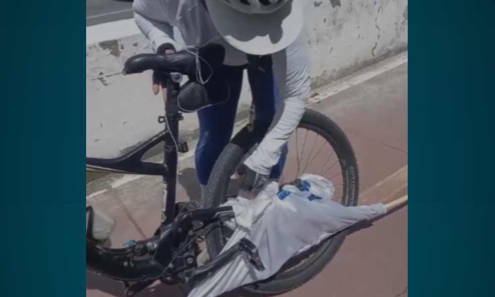 Num vídeo final, a ciclista mostra orgulhosa a benfeitoria de ter afastado ao menos as bandeiras da área onde quase se acidentou. “Empurrei tudinho para trás, para não provocar um acidente”, avisa a ciclistas no vídeo, mostrando que quanto mais perto da ciclofaixa, mais risco para quem pedala.