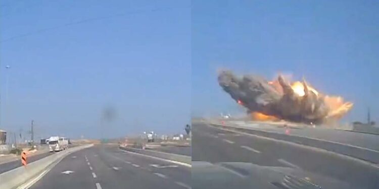 Uma câmera veicular registrou o momento exato de uma grande explosão perto de uma estrada em Ashdod, no sul de Israel, nesta segunda-feira (23). O clarão e o estrondo aconteceram enquanto o Irã iniciava uma nova onda de ataques contra o território israelense, em retaliação aos… pic.twitter.com/FyQMGL8jvu